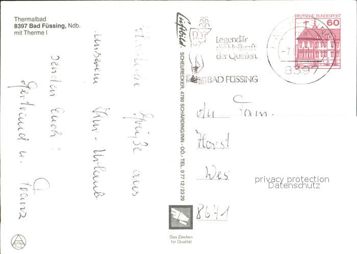 72277089 alte Postkarte Bad Fuessing Fliegeraufnahme Thermalbad postalisch gelaufen Erhaltung siehe scans KatCode: 11110009275116