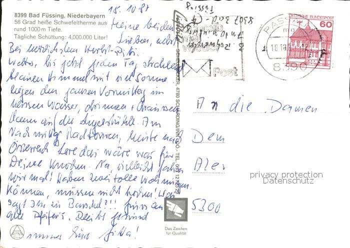 72409927 alte Postkarte Bad Fuessing Fliegeraufnahme Thermalbad und Brunnen postalisch gelaufen Erhaltung siehe scans KatCode: 11110009275116