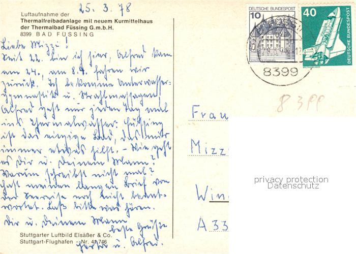 73027811 alte Postkarte Bad Fuessing Fliegeraufnahme Thermalfreibadanlage Kurmittelhaus postalisch gelaufen Erhaltung siehe scans [KathaD81] KatCode: 11110009275116