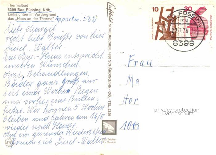 72914002 alte Postkarte Bad Fuessing Fliegeraufnahme Thermalheilbad postalisch gelaufen Erhaltung siehe scans [KathaD81] KatCode: 11110009275116
