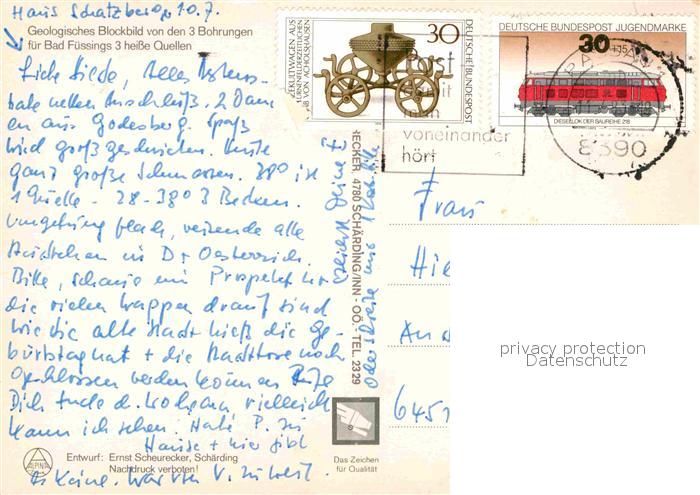 72767989 alte Postkarte Bad Fuessing Fliegeraufnahme und Geologisches Blockbild 3 Bohrungen postalisch gelaufen Erhaltung siehe scans [WerneD78] KatCode: 11110009275116