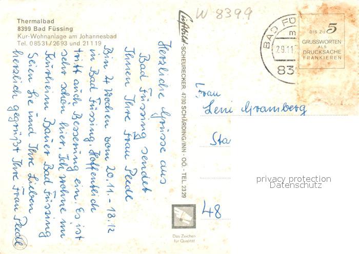73129326 alte Postkarte Bad Fuessing Freibad Schack Johannesbad postalisch gelaufen Erhaltung siehe scans [LiesaD40] KatCode: 11110009275116
