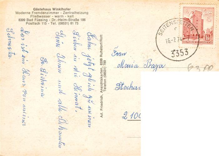73898281 alte Postkarte Bad Fuessing Gaestehaus Winklhofer postalisch gelaufen Erhaltung siehe scans [WerneD78] KatCode: 11110009275116