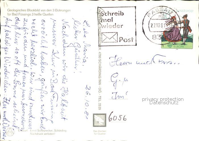 72599532 alte Postkarte Bad Fuessing Geologisches Blockbild 3 heisse Quellen postalisch gelaufen Erhaltung siehe scans [LiesaD40] KatCode: 11110009275116