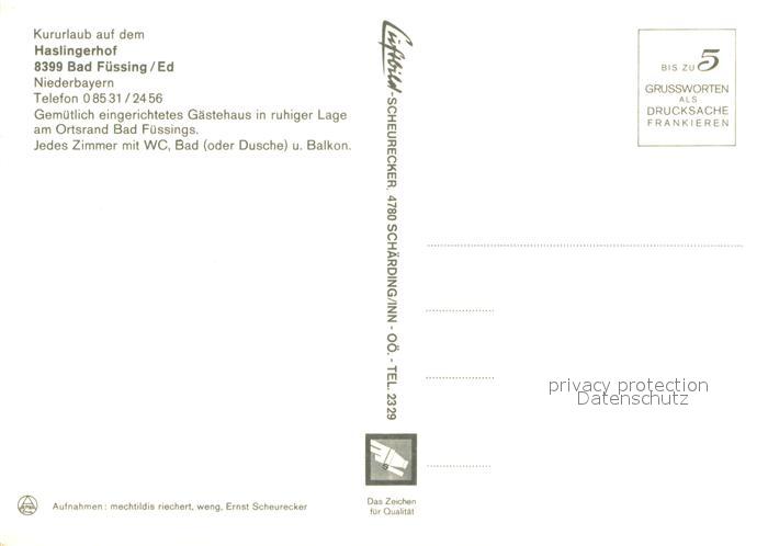 73726264 Bad Fuessing Haslingerhof Urlaub auf dem Bauernhof Restaurant Gaestezimmer Teich postalisch nicht gelaufen Erhaltung siehe scans [FriedD77] KatCode: 11110009275116