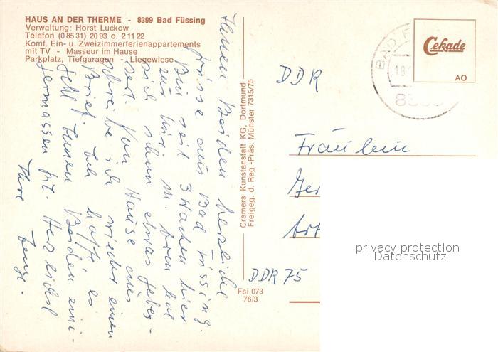 73867031 alte Postkarte Bad Fuessing Haus an der Therme Fliegeraufnahme postalisch gelaufen Erhaltung siehe scans [WerneD78] KatCode: 11110009275116