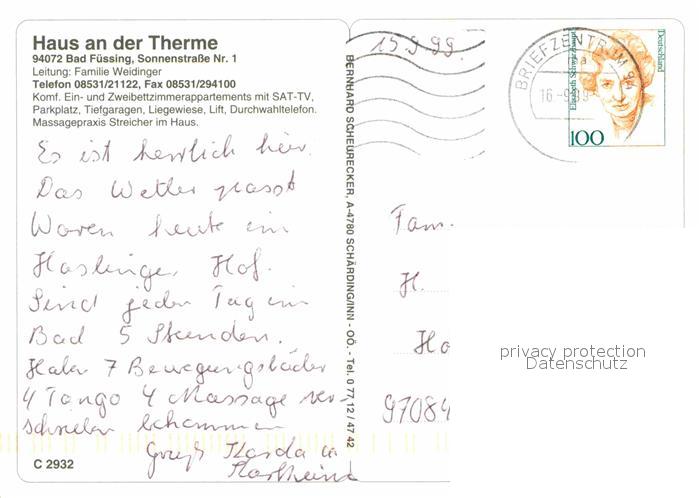 72825330 alte Postkarte Bad Fuessing Haus an der Therme postalisch gelaufen Erhaltung siehe scans [AndreD76] KatCode: 11110009275116
