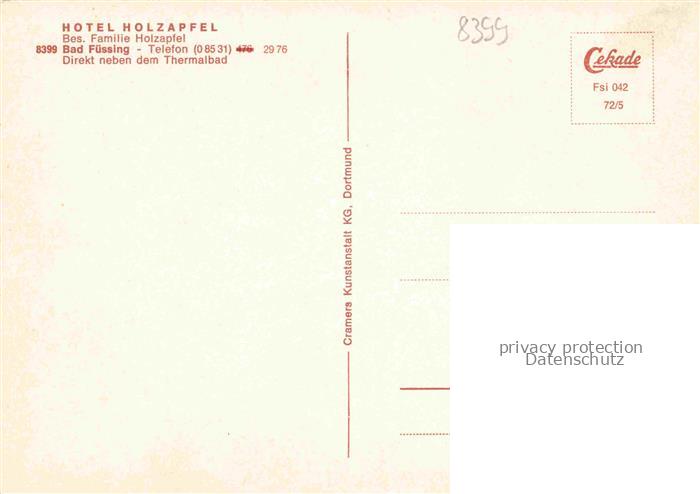 74049584 BAD FuessING Hotel Holzapfel Restaurant Rezeption Luftaufnahme postalisch nicht gelaufen Erhaltung siehe scans [FriedD77] KatCode: 11110009275116