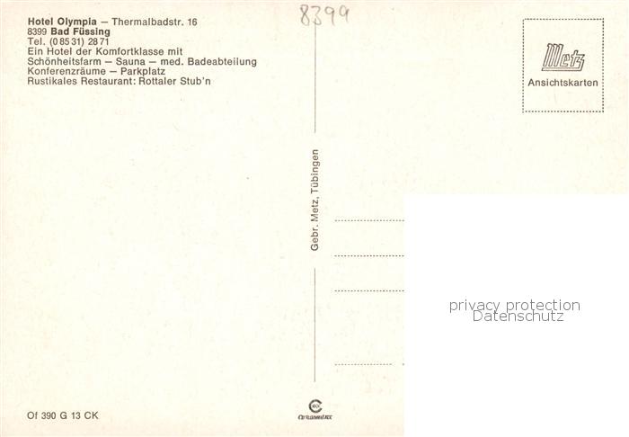 73867826 Bad Fuessing Hotel Olympia Gastraum Terrasse postalisch nicht gelaufen Erhaltung siehe scans [WerneD78] KatCode: 11110009275116