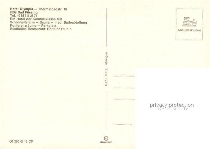 73609419 Bad Fuessing Hotel Olympia Restaurant postalisch nicht gelaufen Erhaltung siehe scans [FriedD77] KatCode: 11110009275116