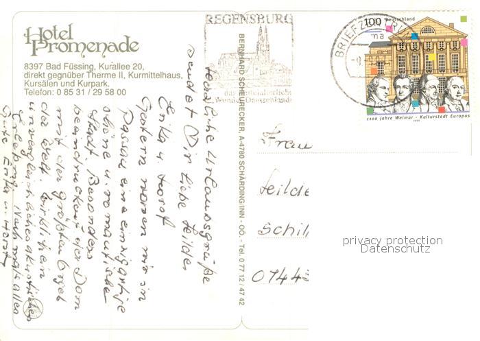 73704636 alte Postkarte Bad Fuessing Hotel Promenade Restaurant Terrasse postalisch gelaufen Erhaltung siehe scans [FriedD77] KatCode: 11110009275116