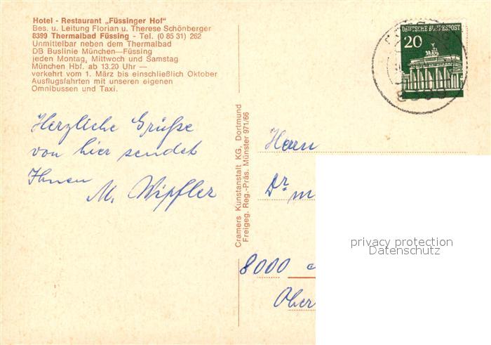 33216597 alte Postkarte Bad Fuessing Hotel-Restaurant Fuessinger Hof Fliegeraufnahme postalisch gelaufen Erhaltung siehe scans [PaolaD17] KatCode: 11110009275116