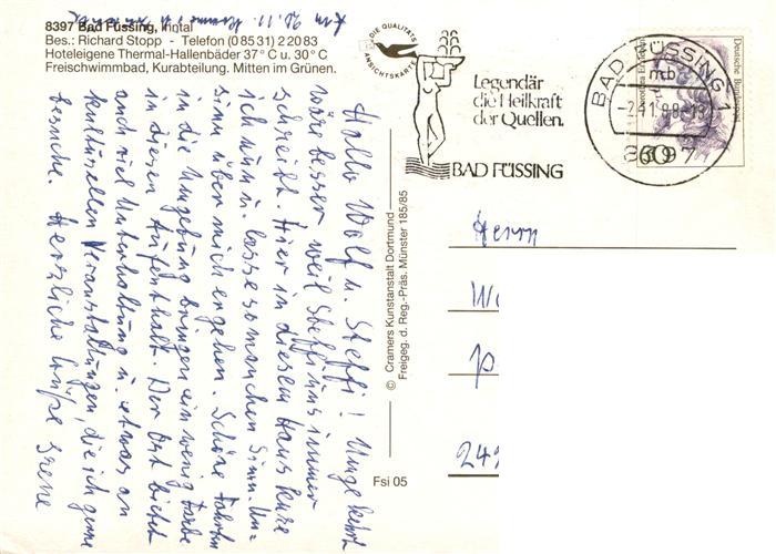 73904510 alte Postkarte Bad Fuessing Hoteleigene Thermal Hallenbaeder Kurabteilung Fliegeraufnahme postalisch gelaufen Erhaltung siehe scans [WerneD78] KatCode: 11110009275116