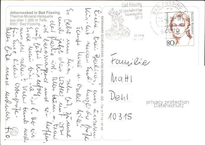 alte Postkarte Bad Fuessing Jahannesbad postalisch gelaufen Erhaltung siehe scans