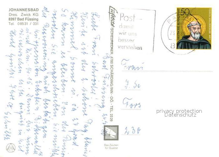 72960126 alte Postkarte Bad Fuessing Johannesbad postalisch gelaufen Erhaltung siehe scans [PaolaD17] KatCode: 11110009275116