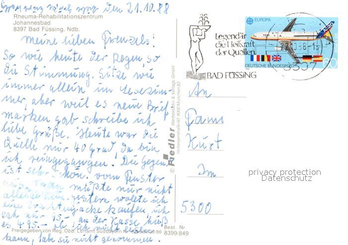 72949534 alte Postkarte Bad Fuessing Johannesbad postalisch gelaufen Erhaltung siehe scans [NatalD47] KatCode: 11110009275116