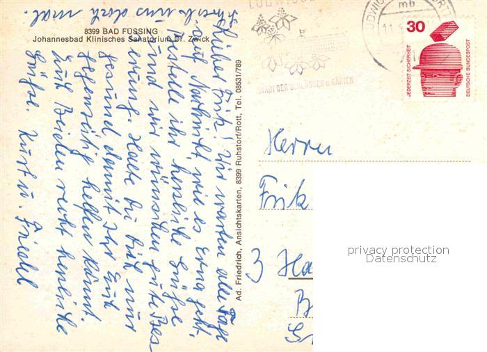 72845414 alte Postkarte Bad Fuessing Johannesbad postalisch gelaufen Erhaltung siehe scans [AndreD76] KatCode: 11110009275116