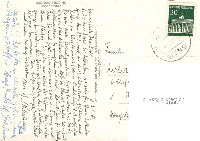 72841760 alte Postkarte Bad Fuessing Johannesbad postalisch gelaufen Erhaltung siehe scans [LiesaD40] KatCode: 11110009275116