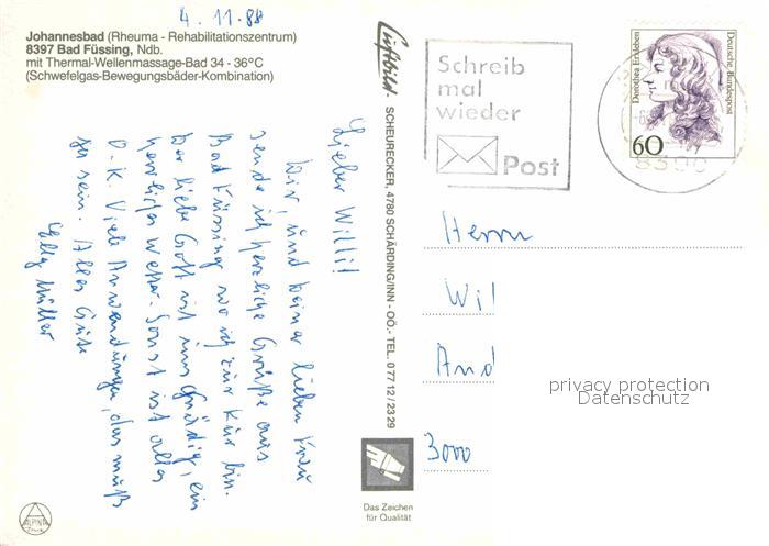 72824654 alte Postkarte Bad Fuessing Johannesbad postalisch gelaufen Erhaltung siehe scans [AndreD76] KatCode: 11110009275116