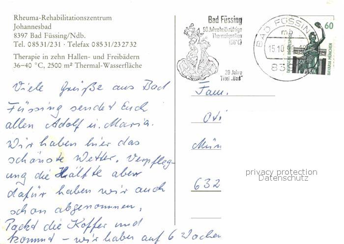 72770124 alte Postkarte Bad Fuessing Johannesbad postalisch gelaufen Erhaltung siehe scans [AndreD76] KatCode: 11110009275116