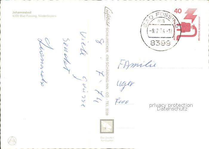 72575919 alte Postkarte Bad Fuessing Johannesbad postalisch gelaufen Erhaltung siehe scans [LiesaD40] KatCode: 11110009275116