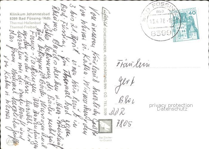 alte Postkarte Bad Fuessing Johannesbad postalisch gelaufen Erhaltung siehe scans