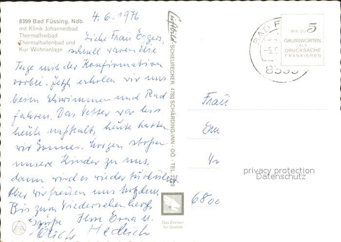 72062597 alte Postkarte Bad Fuessing Johannesbad postalisch gelaufen Erhaltung siehe scans KatCode: 11110009275116