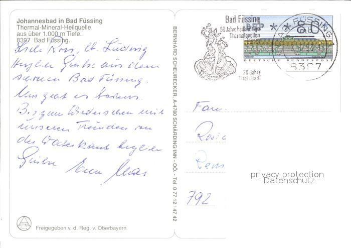 72049448 alte Postkarte Bad Fuessing Johannesbad postalisch gelaufen Erhaltung siehe scans KatCode: 11110009275116