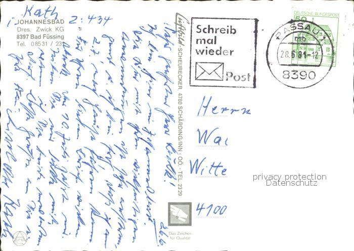 72296921 alte Postkarte Bad Fuessing Johannesbad Fliegeraufnahme postalisch gelaufen Erhaltung siehe scans KatCode: 11110009275116