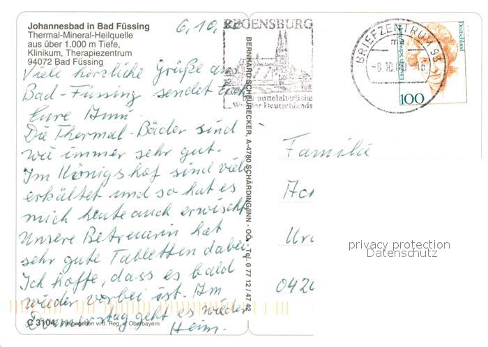 73032171 alte Postkarte Bad Fuessing Johannesbad Fliegeraufnahme postalisch gelaufen Erhaltung siehe scans [PaolaD17] KatCode: 11110009275116