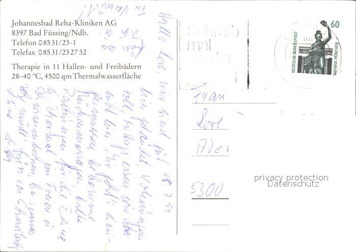 72377257 alte Postkarte Bad Fuessing Johannesbad Reha Kliniken Thermalbad postalisch gelaufen Erhaltung siehe scans KatCode: 11110009275116