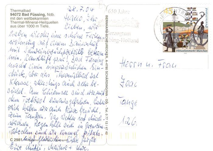 73945918 alte Postkarte Bad Fuessing Johannesbad Thermal-Mineral-Heilquelle Klinikum Therapiezentrum postalisch gelaufen Fliegeraufnahme Erhaltung siehe scans [FriedD77] KatCode: 11110009275116