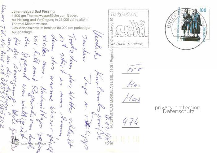 72795587 alte Postkarte Bad Fuessing Johannesbad Thermalbad postalisch gelaufen Erhaltung siehe scans [FriedD77] KatCode: 11110009275116