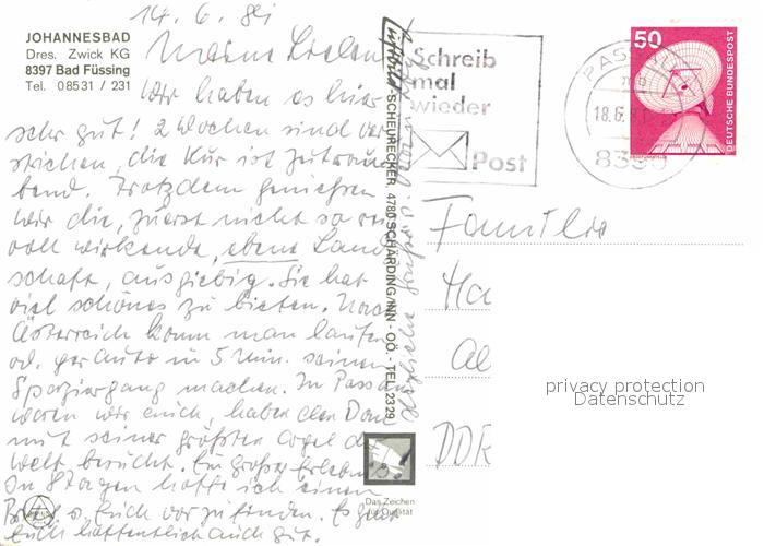 72707020 alte Postkarte Bad Fuessing Johannesbad Thermalbad postalisch gelaufen Erhaltung siehe scans [FriedD77] KatCode: 11110009275116