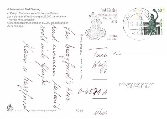 72750425 alte Postkarte Bad Fuessing Johannesbad Thermalbad Fliegeraufnahme postalisch gelaufen Erhaltung siehe scans [FriedD77] KatCode: 11110009275116