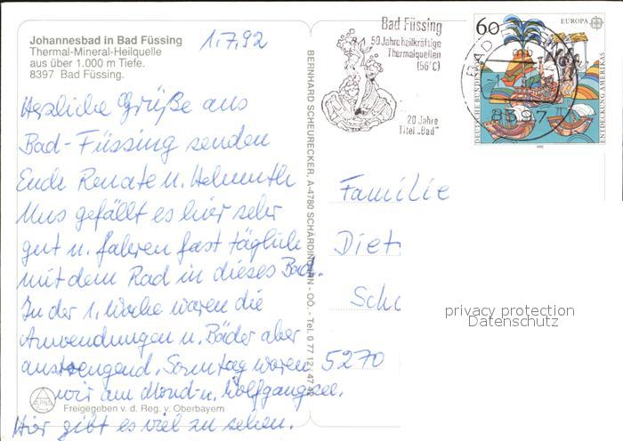 72468861 alte Postkarte Bad Fuessing Johannisbad Thermal Mineral Heilquelle postalisch gelaufen Erhaltung siehe scans KatCode: 11110009275116