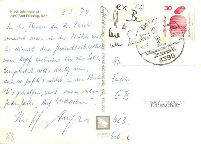 73056791 alte Postkarte Bad Fuessing Klinik Johannesbad postalisch gelaufen Erhaltung siehe scans [WerneD78] KatCode: 11110009275116