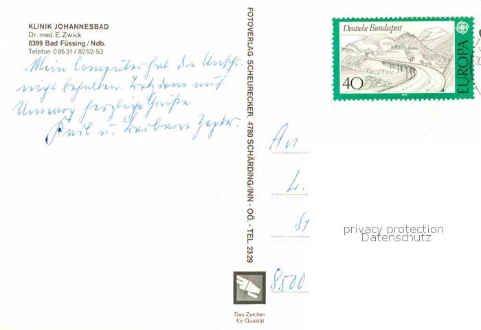 72716659 alte Postkarte Bad Fuessing Klinik Johannesbad postalisch gelaufen Erhaltung siehe scans [LiesaD40] KatCode: 11110009275116