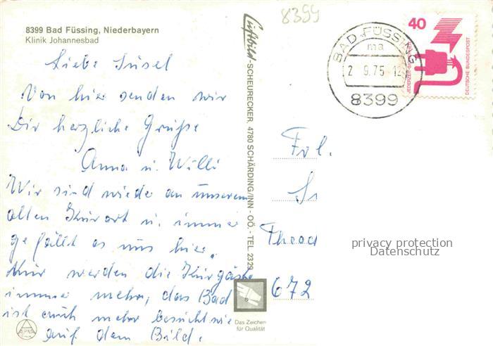 74049580 alte Postkarte BAD FuessING Klinik Johannesbad Thermalbad postalisch gelaufen Erhaltung siehe scans [FriedD77] KatCode: 11110009275116