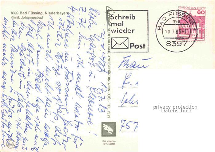 74049695 alte Postkarte BAD FuessING Klinik Johannesbad Thermalbad Freibad postalisch gelaufen Erhaltung siehe scans [FriedD77] KatCode: 11110009275116