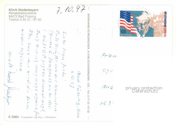 72823333 alte Postkarte Bad Fuessing Klinik Niederbayern Fliegeraufnahme postalisch gelaufen Erhaltung siehe scans [FriedD77] KatCode: 11110009275116