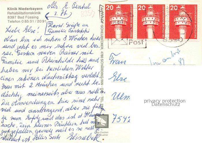 74049567 alte Postkarte BAD FuessING Klinik Niederbayern Rehabilitationsklinik Kurort postalisch gelaufen Fliegeraufnahme Erhaltung siehe scans [FriedD77] KatCode: 11110009275116