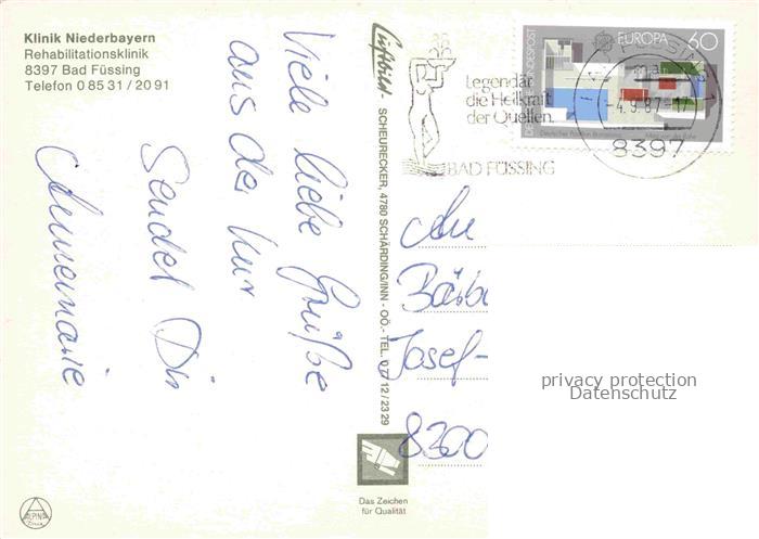 74035060 alte Postkarte BAD FuessING Klinik Niederbayern Thermalbad postalisch gelaufen Fliegeraufnahme Erhaltung siehe scans [FriedD77] KatCode: 11110009275116