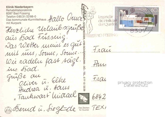72849804 alte Postkarte Bad Fuessing Klinik Niederbayern postalisch gelaufen Erhaltung siehe scans [NatalD47] KatCode: 11110009275116