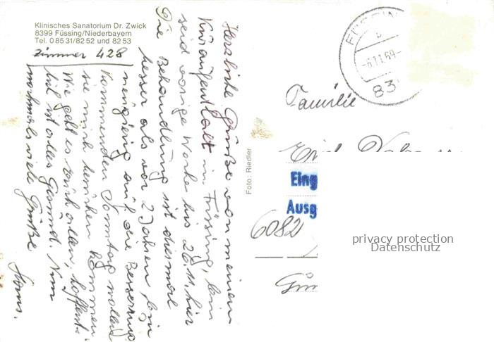 74049686 alte Postkarte BAD FuessING Klinisches Sanatorium Dr. Zwick Johannesbad Hallenbad postalisch gelaufen Erhaltung siehe scans [FriedD77] KatCode: 11110009275116