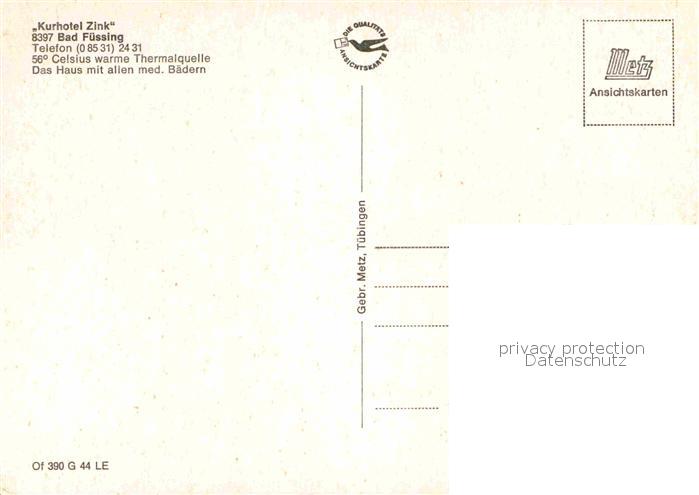 72684057 Bad Fuessing Kur Hotel Zink postalisch nicht gelaufen Erhaltung siehe scans [AndreD76] KatCode: 11110009275116