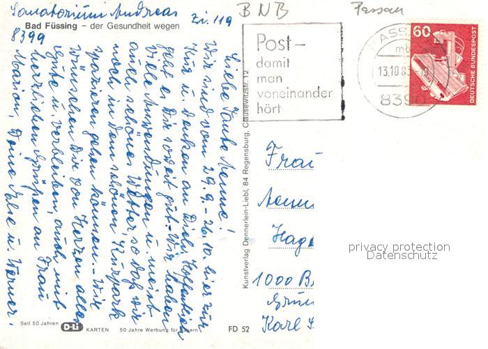 72991472 alte Postkarte Bad Fuessing Kurhaus Kurpark Mooreiche postalisch gelaufen Erhaltung siehe scans [LiesaD40] KatCode: 11110009275116