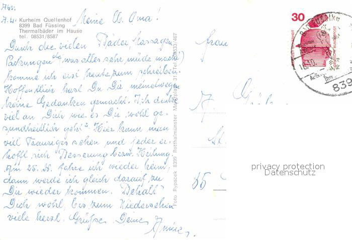 72698777 alte Postkarte Bad Fuessing Kurheim Quellenhof Thermalbad postalisch gelaufen Erhaltung siehe scans [FriedD77] KatCode: 11110009275116