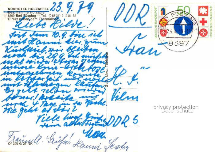 72859155 alte Postkarte Bad Fuessing Kurhotel Holzapfel postalisch gelaufen Erhaltung siehe scans [AndreD76] KatCode: 11110009275116