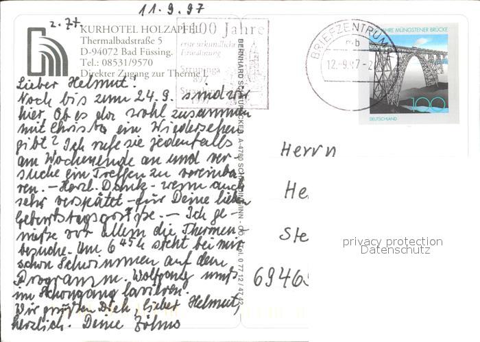 72221366 alte Postkarte Bad Fuessing Kurhotel Holzapfel postalisch gelaufen Erhaltung siehe scans KatCode: 11110009275116
